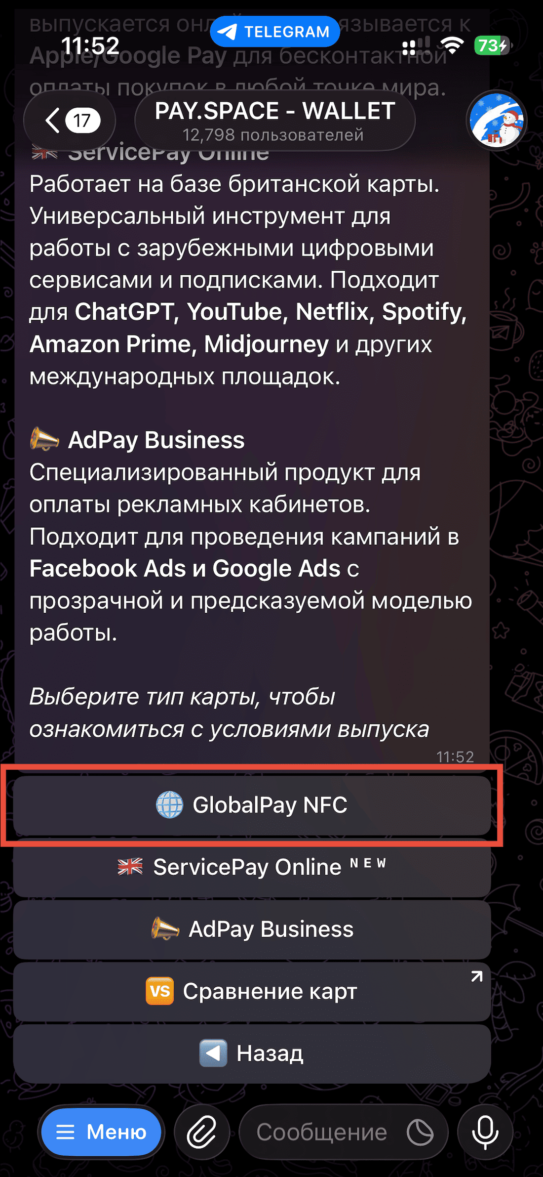 Выберите выпуск виртуальной карты Global Pay