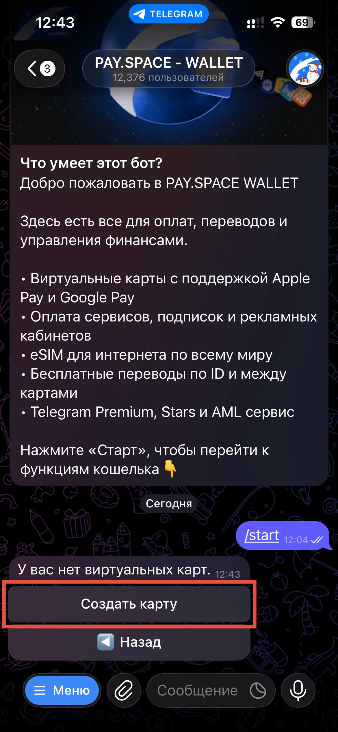 Карта работает как обычная Visa или MasterCard и принимается Figma без ограничений. Её можно выпустить за одну минуту в Telegram-боте @space_wallet