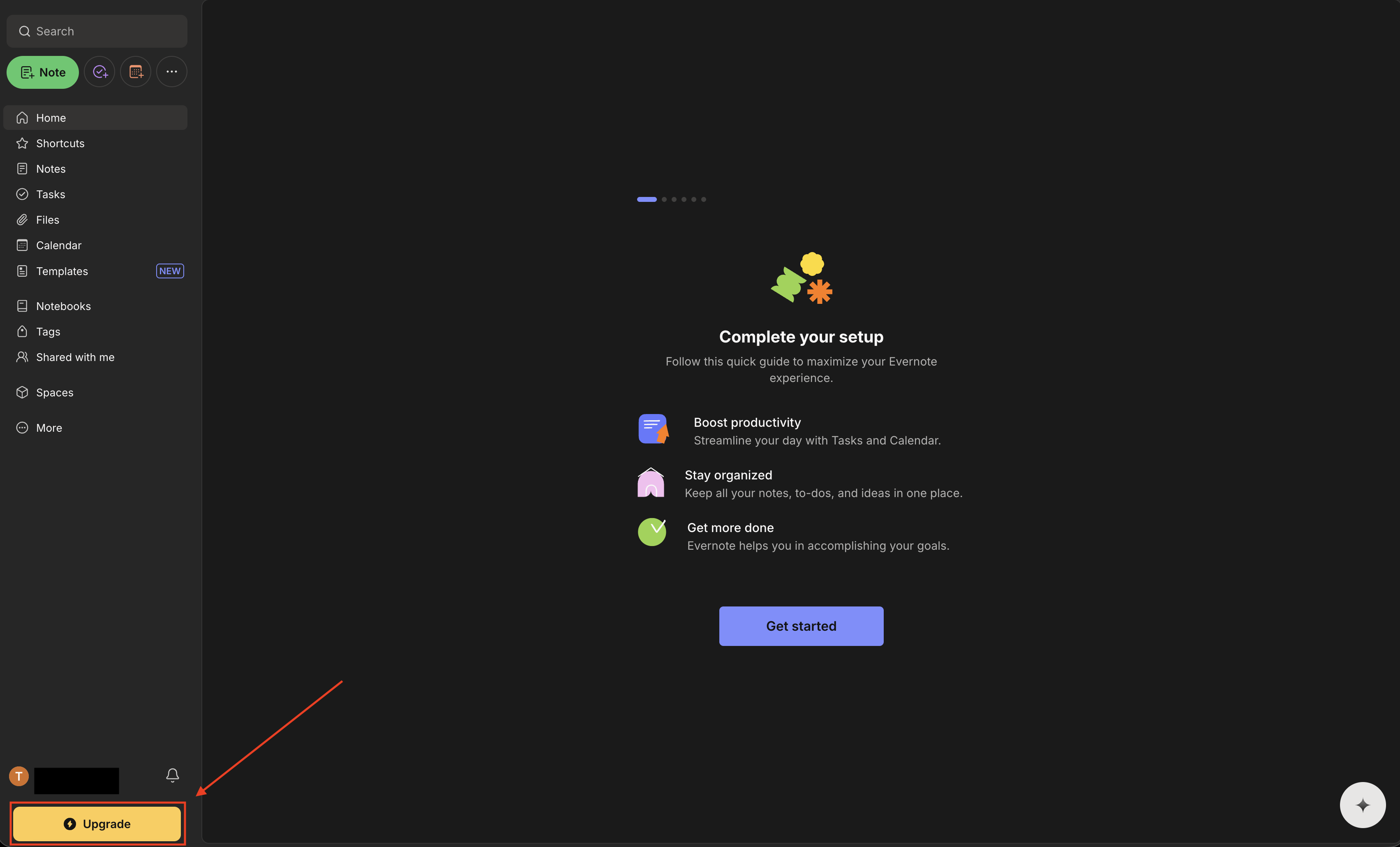 После входа в аккаунт нажмите кнопку Upgrade в левом нижнем углу экрана.