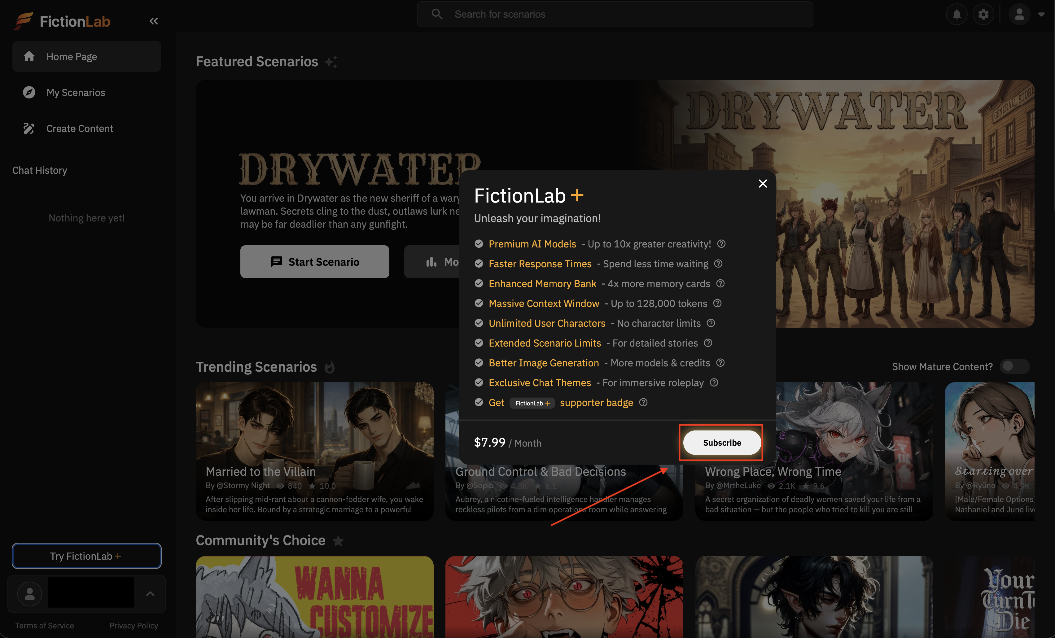 Нажмите Subscribe to FictionLab+.
