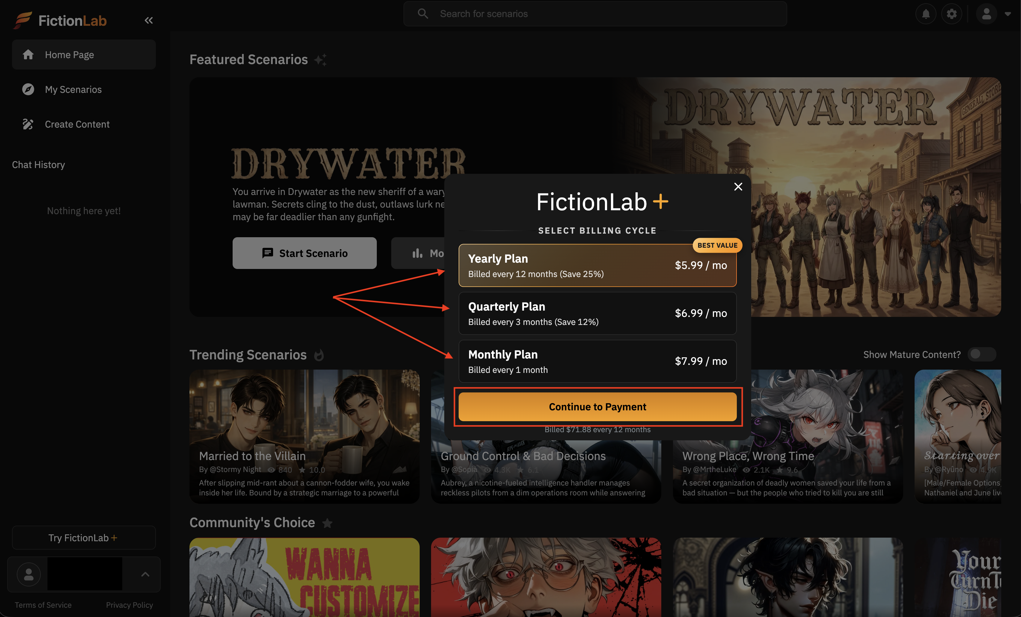 Как выбрать тариф в FictionLab и оплатить подписку